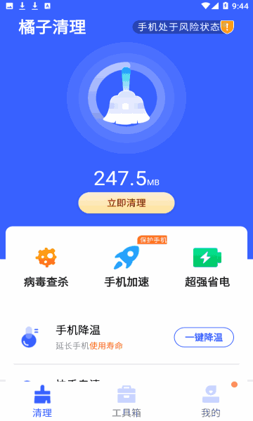 橘子清理最新版、这是目前非常流行的手机清理软件、软件内的功能非常齐全、用户需要用到的手机清理软件、这里都有、并且还是免费实用、感兴趣的用户快来下载吧、非常的实用。