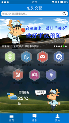 2、警务信息:发布交通法规、公告、工作程序、交通安全等信息,让车主随时了解相关动态信息;
