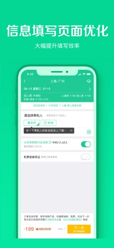 除了首页功能布局的大胆创新,用户的订票流程也有了极大的优化,机票预订页面的下方十分人性化地提供了关于机票的便捷操作入口包括选座值机、机场助手、航班动态等。机票预订过程中,从行李、选座、保险、餐食到接送机和机场贵宾室都可以根据用户各自的需求个性定制,并且会在最终支付时提供金额详情,简单明了地展示所有费用的明细。值得一提的是,新版的在线选座功能采用了类似影院购票选座的形式,轻松点几下即可完成多人选座,可售座位、已售座位和我的座位一目了然,十分快捷方便。