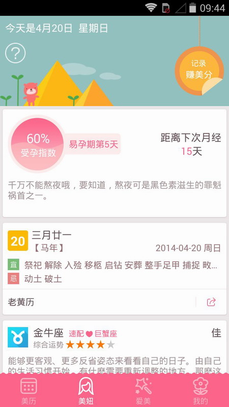 美历app安卓版是一款专属于女生的软件。美历app安卓版你的大姨妈助手,帮你记录,帮你一步步变美。还有好多特色功能,还可以互相提问。帮你解答你想知道的事情~