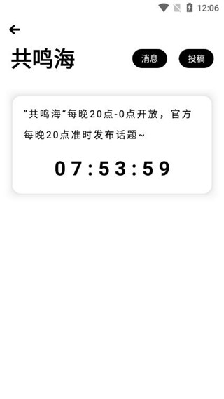 1、点击右上角的共鸣海,官方会准时发布话题,用户可以投稿;