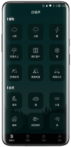 3、简单舒适的界面,选择适合放松和睡眠的自然声音,可以放松和缓解工作和生活的压力。