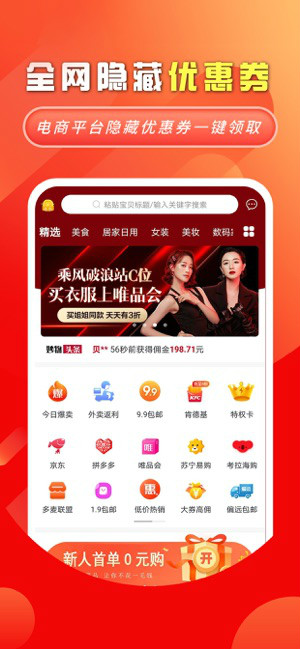 【全网优惠券】涵盖淘宝,京东,拼多多,苏宁等主流网购平台隐藏优惠券,一站领取绝对省心。