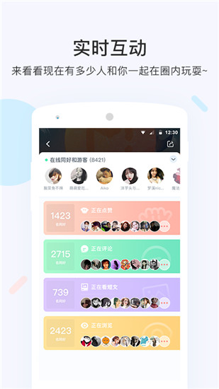 实时更新圈内活动人数,随时查看多少同好正和你一起在圈内愉快玩耍,即使一个人刷动态也不再孤单。