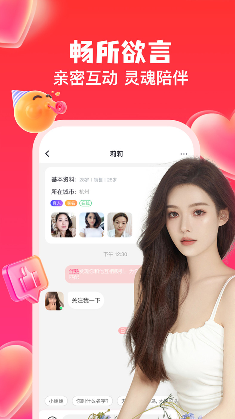 伴熟app是一款功能齐全、安全可靠、便捷实用的交友软件,用户可以轻松认识新朋友,分享生活,与好友互动交流,扩大社交圈,让生活更加有趣和丰富。在该软件中提秀注重用户的隐私保护,用户可以设置自己的隐私权限,选择是否公开自己的个人信息和动态,避免不必要的骚扰和侵犯隐私。伴熟还提供了多种语音和视频聊天方式,让用户可以更加直观地认识新朋友。通过语音和视频聊天,用户可以更好地了解对方的性格、兴趣爱好等信息,从而更加深入地交流。