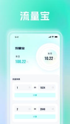 2、具有流量板功能,为用户展示了今日已用、本月已用流量数据;