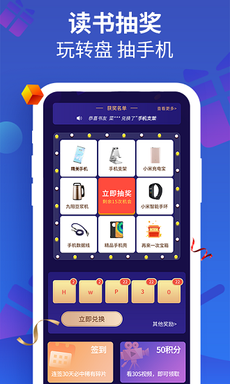 1、它给我们带来了很多阅读的好处,不仅是免费阅读,还有抽奖;