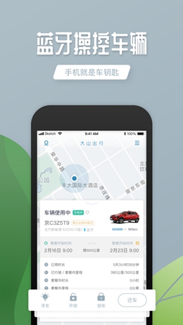 大山出行是一个新能源汽车共享的平台,一部手机就可以找到可以出租的车,多网点取车还车,车辆套餐多,优惠多,用户使用起来是非常是便捷,也方便了用户的出行,觉得还不错的朋友就快去下载一个体验一下吧!