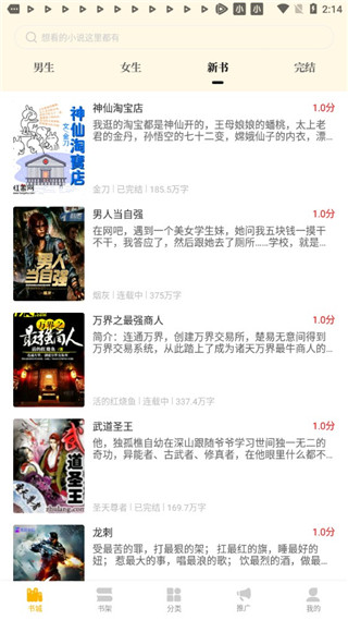 1、丰富的小说资源,各种类型,都是你喜欢这里的;