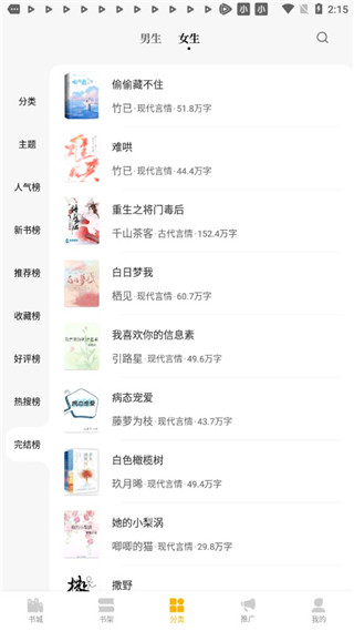 西风小说2022小说资源很多,无论是玄幻、武侠童话、都市历史等。男生喜欢的,或者古代言情,现代言情,女生喜欢的言情和青春,人气榜,新书榜,推荐榜,收藏榜,点赞榜,热搜榜等。,供用户选择,同时支持一键缓存到本地书架,想看的时候可以直接打开。
