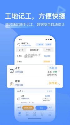 3、软件提供了便捷的工地管理功能,如记工天、记工时、记账、考勤等,让工地管理更加轻松;