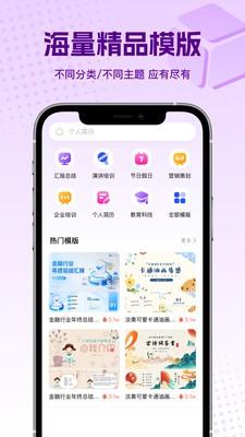 PPT大师手机版是一款非常优秀的PPT相关软件,它提供了丰富、优秀的PPT模板资源,用户可以非常方便的查找需要使用的类型模拟并免费的下载使用。软件中涵盖了商业、学术、艺术等诸多领域类型的PPT样式模板,实用的分类工具帮助更高效的整理模板素材,这样就能够更轻松查看选择需要的模板。PPT大师手机版软件的使用非常方便,整洁舒适的页面,海量精品模板素材使用,有需要的用户快来下载吧。