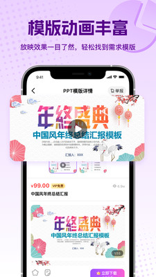 3、动态模板支持-提供动态模板,包括动画效果、过渡效果等,使PPT演示更加生动;