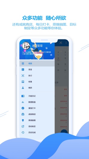 2、数据分析报告功能以图表的形式显示,工作进度和习惯形成情况,方便及时调整计划;