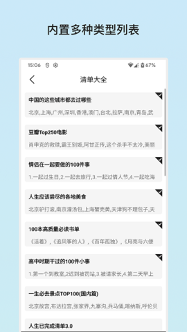 2、应用中拥有各种列表,方便随时在线记录不同的愿望;