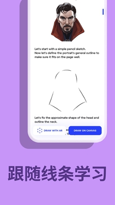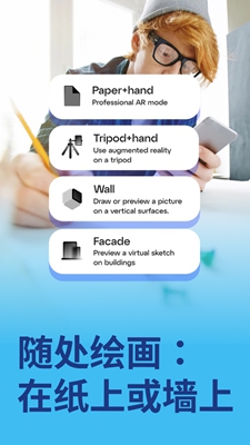 1、通过智能手机摄像头,将虚拟的素描图像投影到现实世界的纸张上,可以在纸上描摹这些图像;