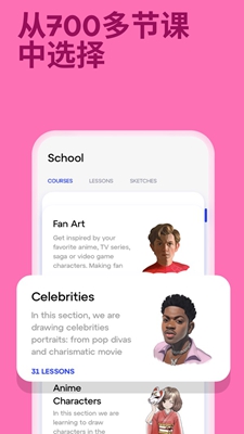 2、应用中内提供了大量的绘画课程和教程,涵盖初学者到高级水平的各种绘画技巧和艺术风格;