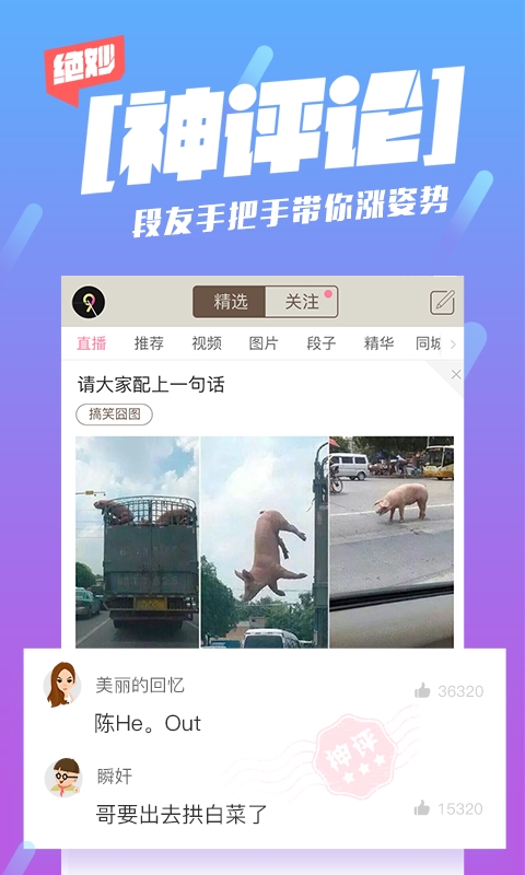 内涵段子是一款包含各类短视频、脑洞神评论、图片、段子、精华等多主题多体裁的社交软件,搞笑娱乐社区。创立于2012年,运营商为