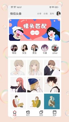 3、丰富的头像分类,女生、男生、动漫、情侣等。