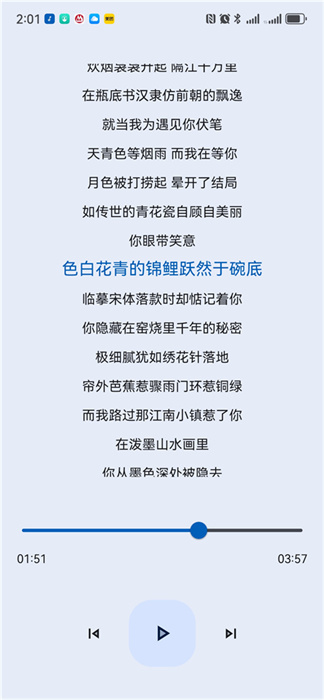 3、在收听的过程中还可以看到每个音乐的歌词,轻松就能在线进行跟唱;