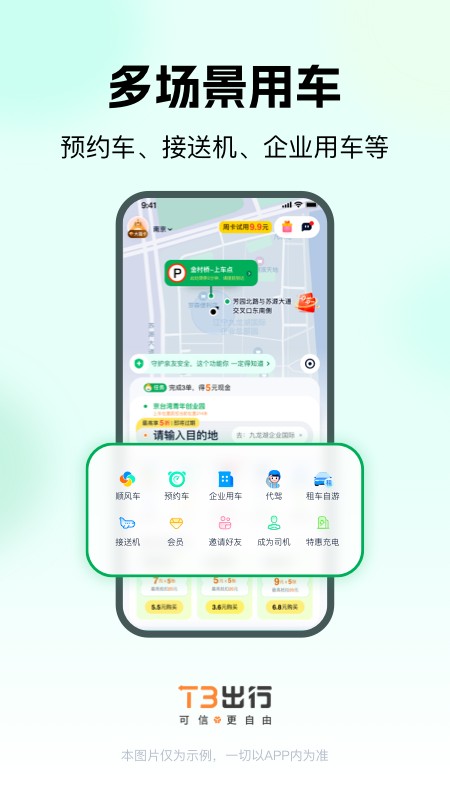 2、提供租车、打车等多种服务,覆盖面包车、商务车等不同车型,满足用户多样化的出行需求;