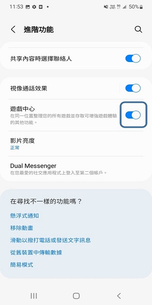 点击屏幕下面的“设置”按钮,找到“进阶功能”,然后下拉,找到“游戏中心”,点击后面的按钮开启,就显示到了桌面。