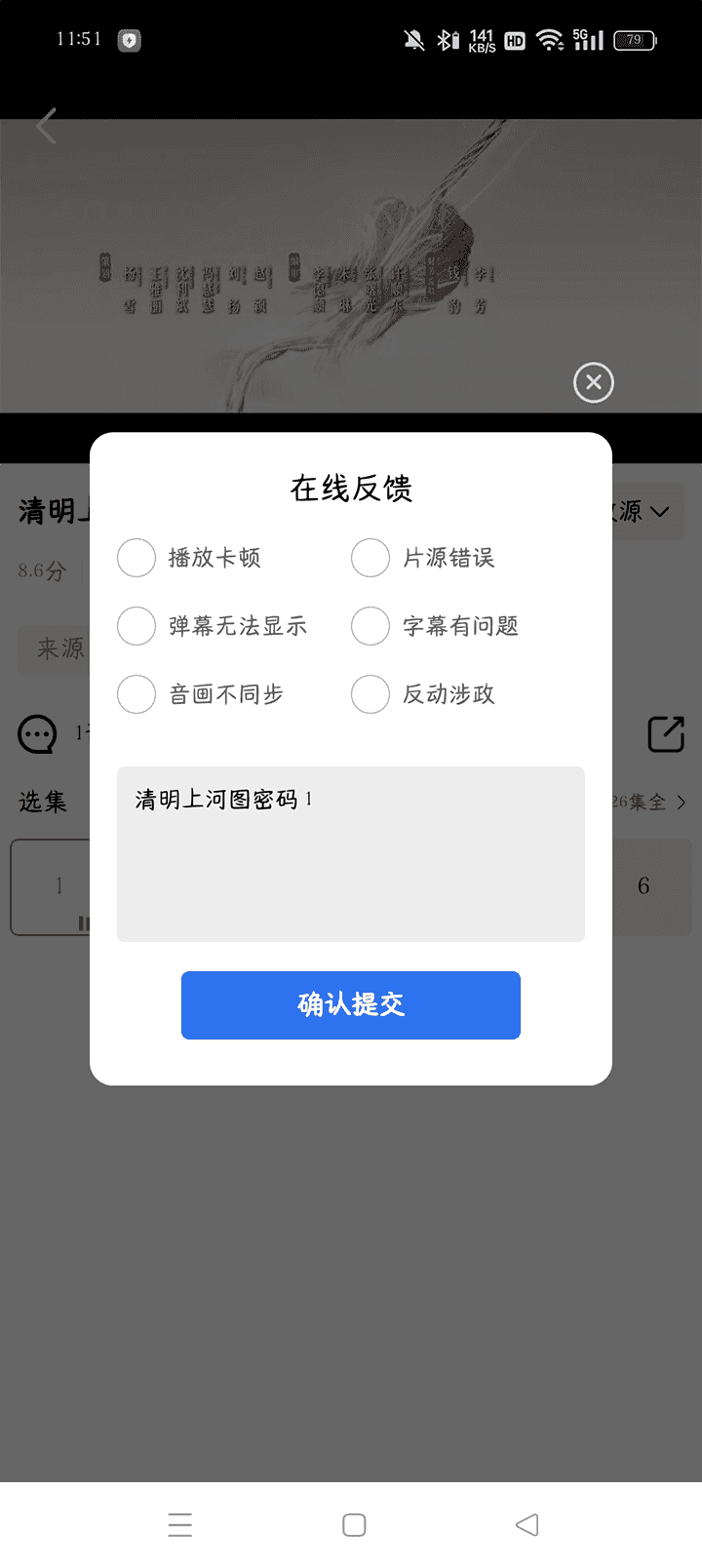 2、遇到播放卡顿、音画不同步等问题可以点击在线反馈