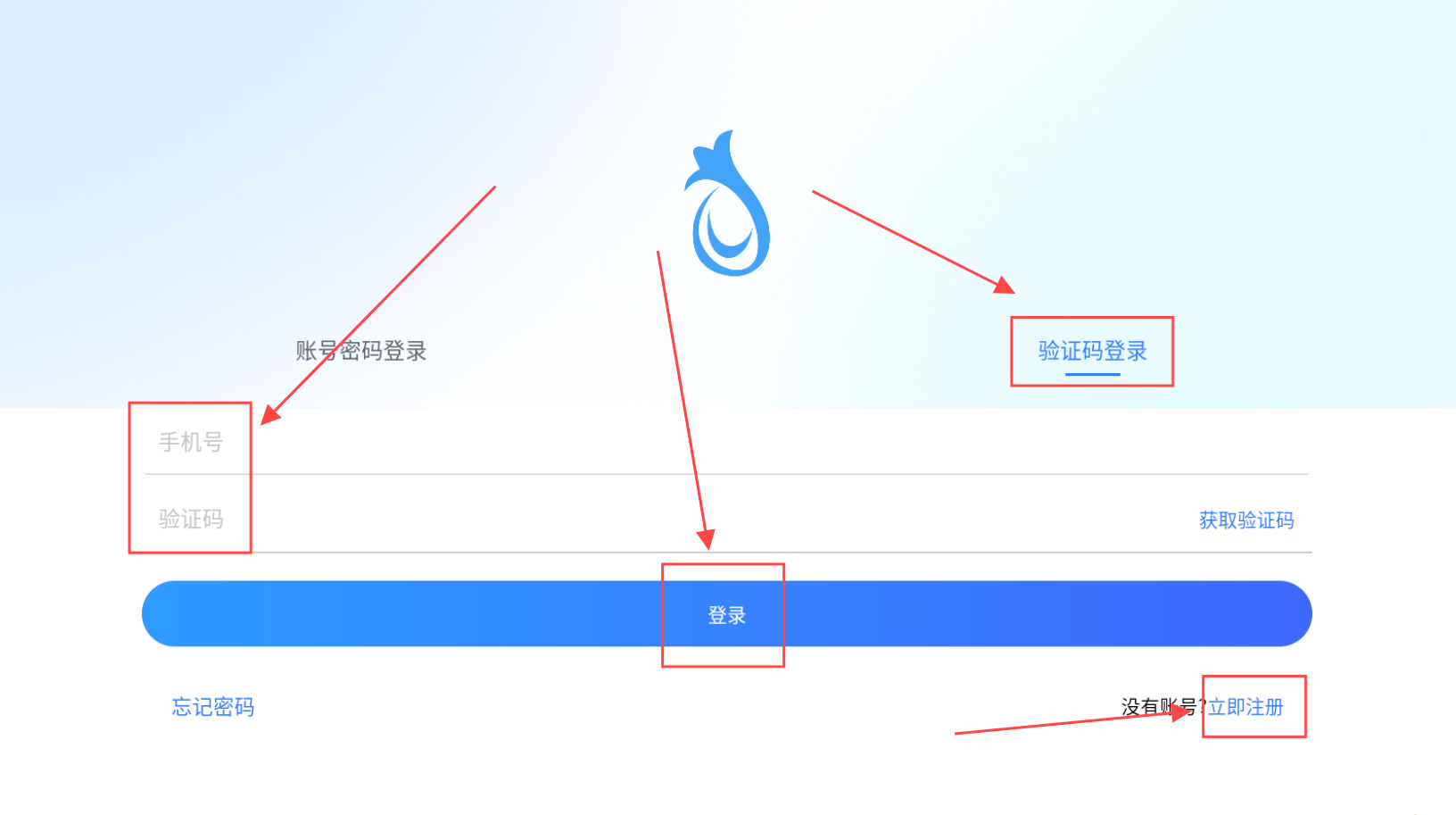 2、也可以验证码登录。