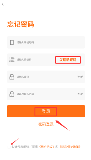 3、遇到密码忘记的情况,点击登录页面的找回密码选项就能重新设置新密码。