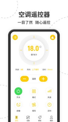 1、空调遥控:支持各种品牌的空调遥控,包括温度、风速、模式等多种控制功能;