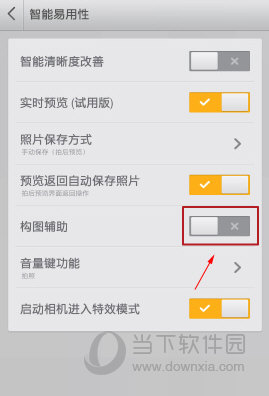 1、同样的需要进入到相机360的系统设置功能界面,然后再点击高级设置,在高级设置栏里点击智能易用性,然后选择进入构图辅助功能界面。