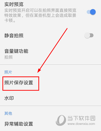 1、打开相机360,在相机的系统共设置功能选项中选择“照片保存设置”功能。