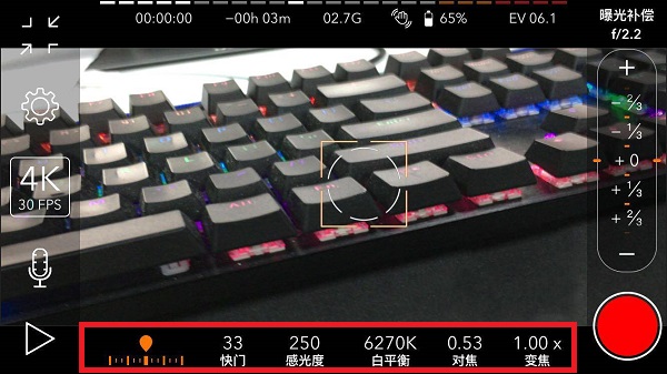6、手动控制曝光、快门、感光度、对焦和白平衡。