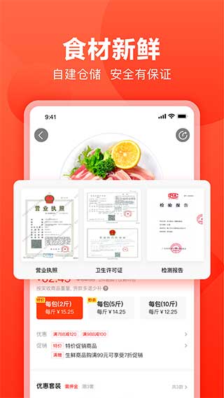 1、放心购买,一键购买优质食材;