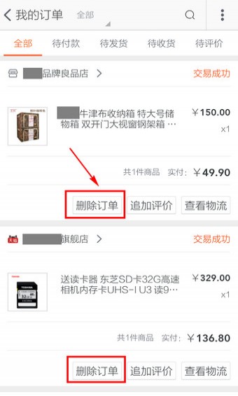 3.这里便是最近的订单记录,没有看到【删除订单】按钮
