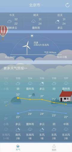 2、简单的7天天气、风向、温度和空气质量预报;