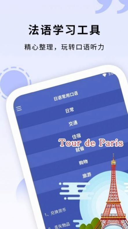 3、用户可以随时随地学习,轻松浏览提供的日常用语和口语,系统学习法语发音;