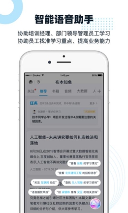 布本知鱼app为大家提供了人工智能方面的知识,可以用于企业培训新员工,自主学习提升个人能力,系统的课程信息,可以准确的理解每一个岗位的知识结构,轻松的就可以查找到合适自己学习的课程信息,满足用户的学习需求;视频课程、书籍、微知识、培训等学习资源都有,并且还提供了多种查找学习资料的便捷通道,分类、搜索、筛选等功能都可以帮助您查找需要的信息,在更短的时间内查找学习资料,既省时又省心;纯线上学习,没有时间方面的限制,在任何时候都可以学习知识。