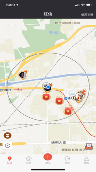 “红信”APP基于*BS+信息的技术,实现了一公里内的信息发布平台,