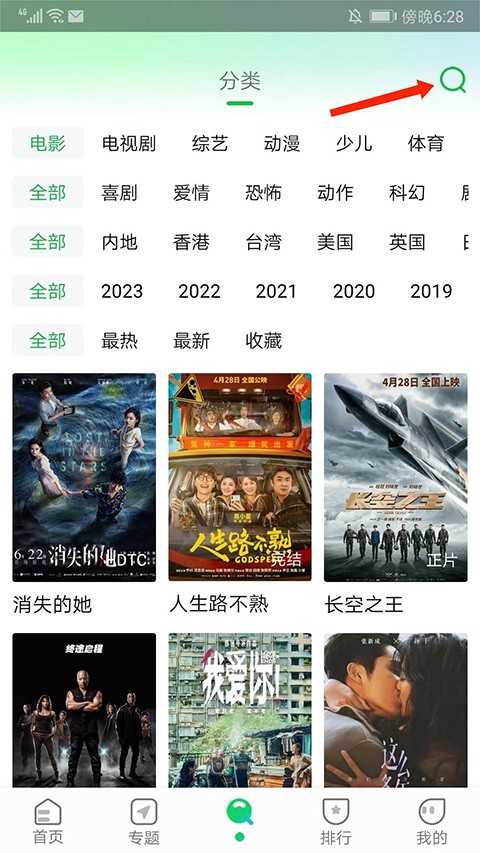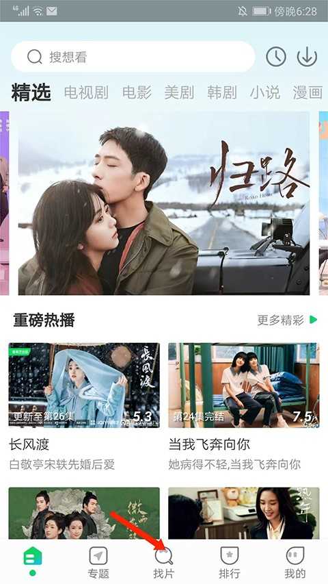 2、进入找片界面,选择右上角【放大镜】图标即可开始搜索;