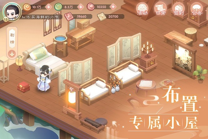 3、一个最棒的小屋出现了,玩家可以靠自己去布置,展示你的创意吧。