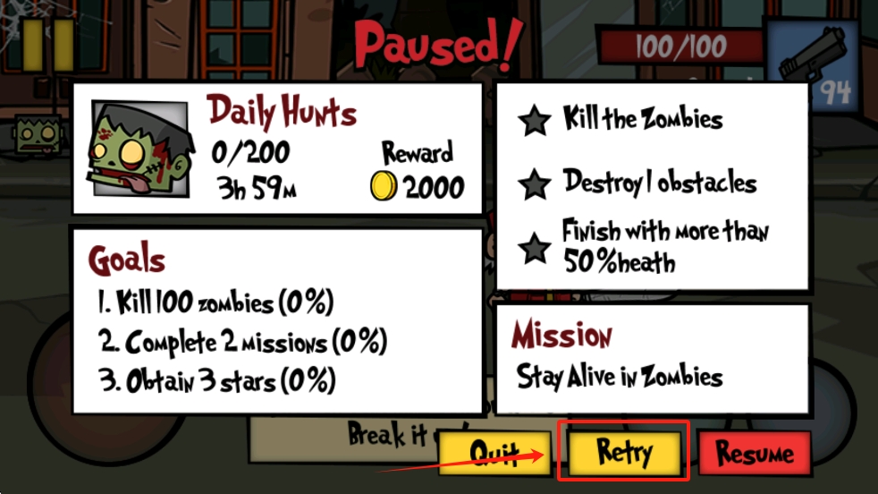 3、游戏中遇到困难可点击暂停,了解目标和任务后选择相应操作按钮继续游戏。