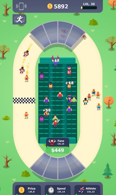 在运动城市大亨游戏中,玩家自己建造健身房,不断解锁新的运动员,并放置在你的健身房中开始新的运动,吸引更多的市民参与。运动员完成一场比赛,就会自动产生金币,帮助选手轻松赚钱。