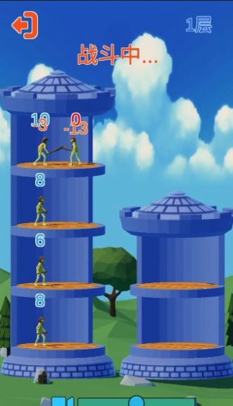 3、操作也相当简单,移动你的小人不断消灭高塔的上敌人,增加头上的数值。