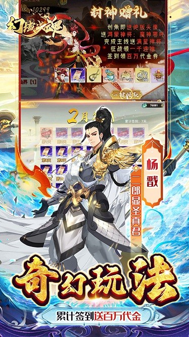 天地齐聚,谁来破解。封神之路,谁主沉浮? 全新国风封神手游《幻域战魂》来袭~ 开局全场充值畅享1.0折,创角登录即送顶级神将,通关送真充卡,一直推一直送,超多福利等你来领! 这里点兵于封神台,?异兽休憩待命之辞,神话命器沉睡千年,今朝出山,锋芒毕露。封神台上,风云变幻,英雄豪杰齐聚,共赴一场封神之约。