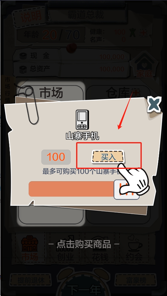 一亿小目标带来趣味十足的模拟经营体验,复古画面勾起怀旧情怀。在这里,你将白手起家,从零打造商业帝国,涉足多元行业,逐步壮大事业版图。通过智慧经营与策略布局,挑战赚取人生首个亿元的目标,体验从默默无闻到行业巨头的逆袭之路,书写属于自己的财富传奇。