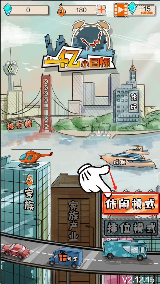 1、在游戏主界面,点击 “休闲模式” 按钮,进入休闲模式。