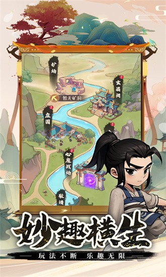 是一款休闲策略类游戏。游戏中玩家从一个江湖小虾米开始成长,踏遍万水千山,结识各路英豪,挑战各帮各派,探索险地绝境,不断学习各种神功秘籍,最终成为武林至尊。
