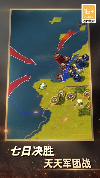 与其他SLG手游不同,《二战风云2》没有枯燥漫长的建设养成,玩家可通过在线匹配与其他玩家在可容纳160人的七日战场中进行实时激烈对战,自由的匹配机制,多样化的战场地图,必将让您的对决更加酣畅淋漓。