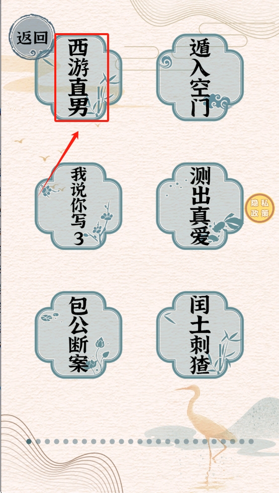 2、在模式选择界面,点击“西游直男”模式,进入首个关卡,开始你的找茬挑战。